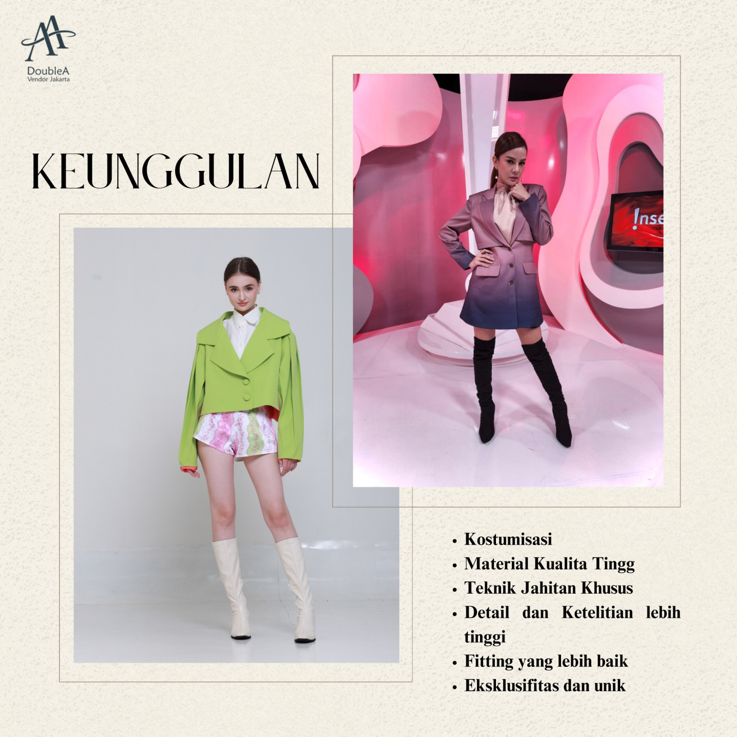 Ingin pakaian dengan kualitas jahitan terbaik? Percayakan pada kami! Tim penjahit profesional kami akan menghasilkan pakaian dengan detail jahitan yang rapi, presisi, dan berkualitas tinggi layaknya jahitan butik ternama.